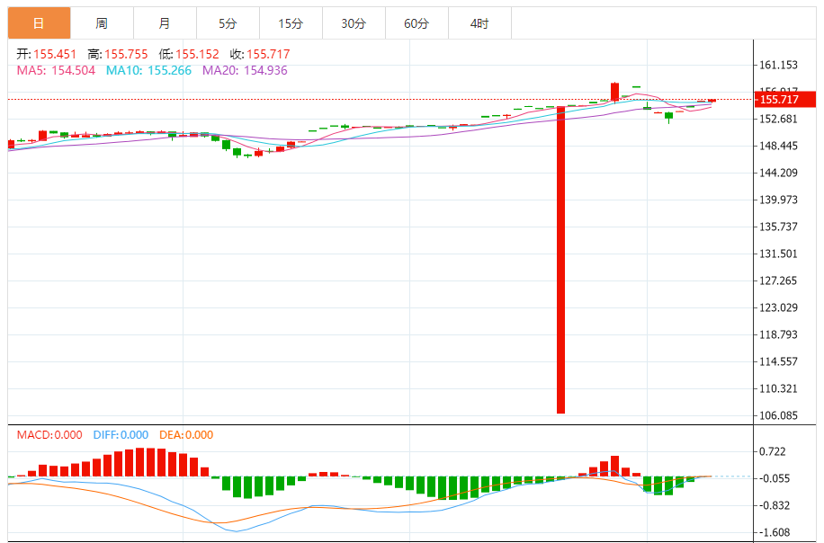 阻力位:155.68 155.73 155.79