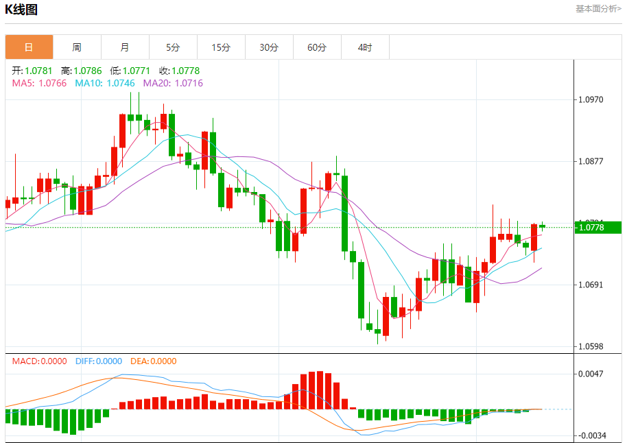 汇价高见1.0786,低见1.0771。上一交易日,汇价收于1.0781。