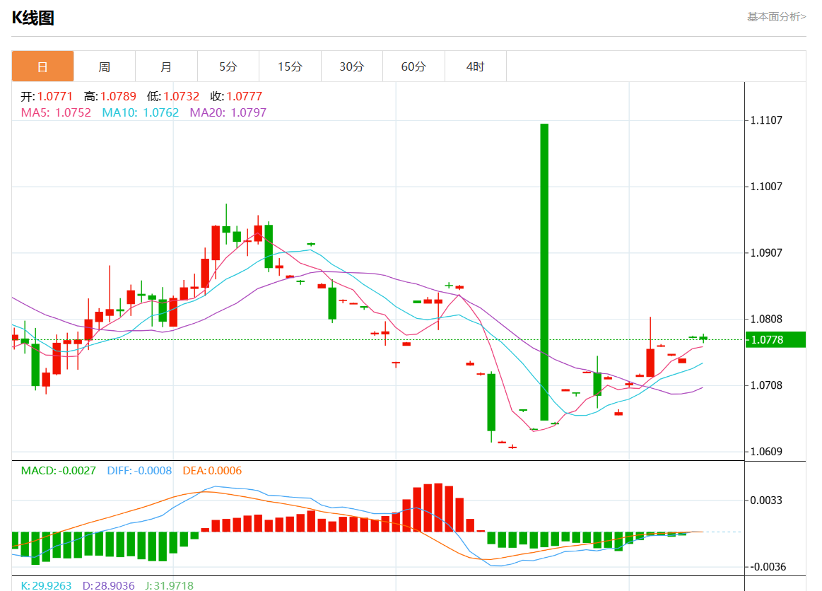 周五欧市盘中,欧元/美元最新报1.07773,日图跌0.03%.