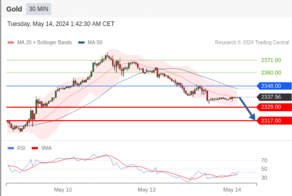 【XM交易平台】2024年5月14日亚盘交易建议:黄金、白银、欧元、英镑、日元、瑞郎交易点位技术分析及预测