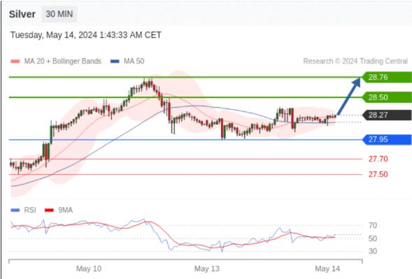 在 27.95 之上,看涨,目标价位为 28.50 ,然后为 28.76 。