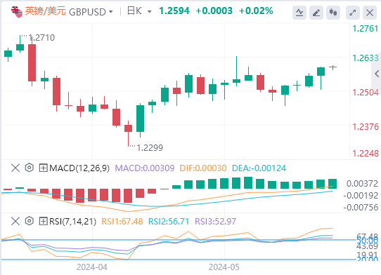 接近区间1.2450-1.26的上限,但是否会突破该区间还有待观察。在1.26附近密切关注价格走势。