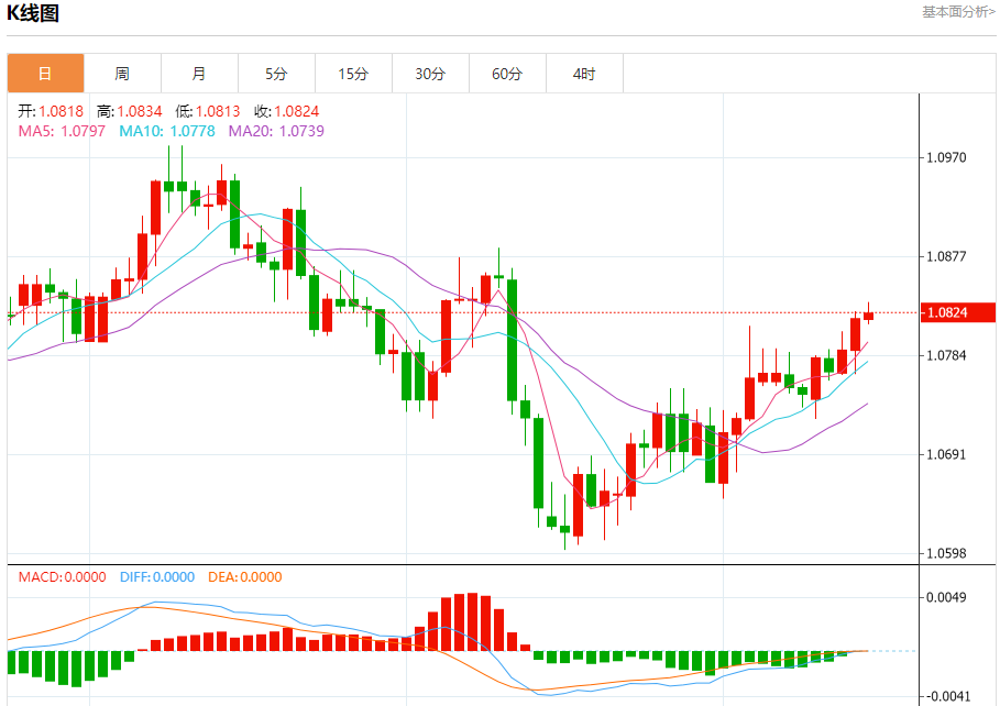 汇价高见1.0834,低见1.0813。上一交易日,汇价收于1.0819。
