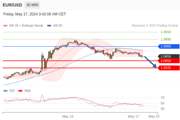 在 1.0880 之下,看跌,目标价位为 1.0850 ,然后为 1.0835 。