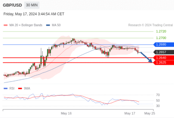 在 1.2680 之下,看跌,目标价位为 1.2640 ,然后为 1.2625 。