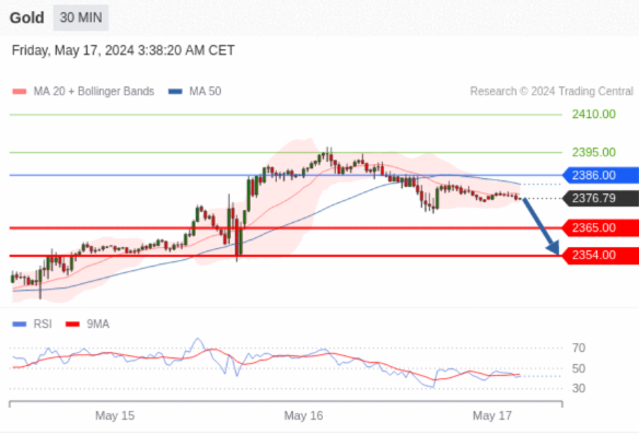 在 2386.00 之下,看跌,目标价位为 2365.00 ,然后为 2354.00 。
