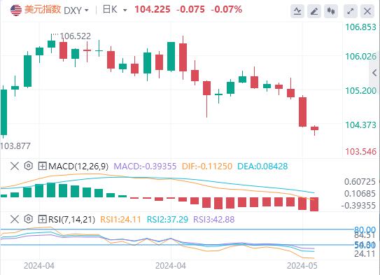 周四亚市盘中,美元指数最低一度跌至104.08,为4月10日以来最低水平。