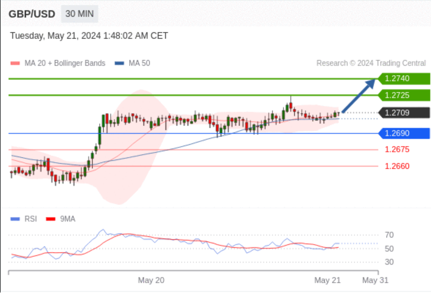 在 1.2690 之上,看涨,目标价位为 1.2725 ,然后为 1.2740 。