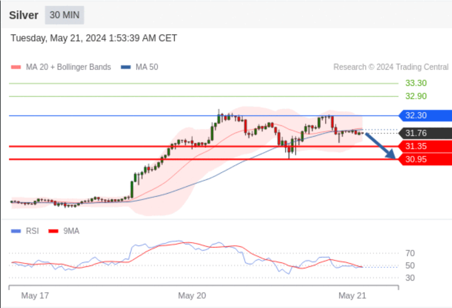 在 32.30 之下,看跌,目标价位为 31.35 ,然后为 30.95 。