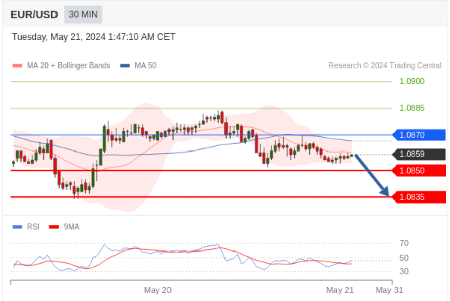 在 1.0870 之下,看跌,目标价位为 1.0850 ,然后为 1.0835 。