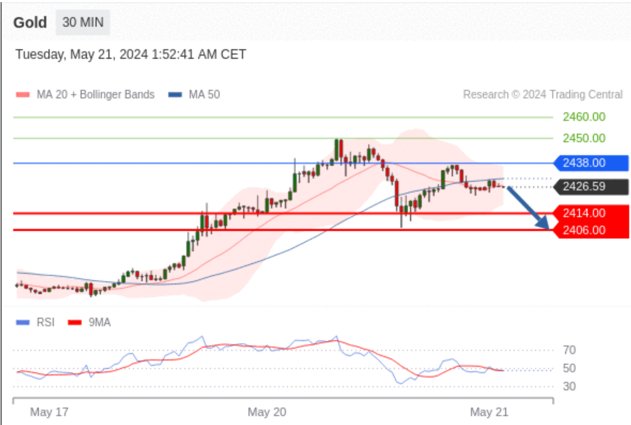 在 2438.00 之下,看跌,目标价位为 2414.00 ,然后为 2406.00 。
