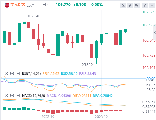 追踪美元兑六种主要货币的ICE美元指数周二上升0.56%,至106.71,月线涨约0.5%,连续三个月走高。美元/日元周二飙升1.7%至151.68。欧元/美元下跌近0.4%至1.0572,英镑/美元下跌0.18%至1.2144。