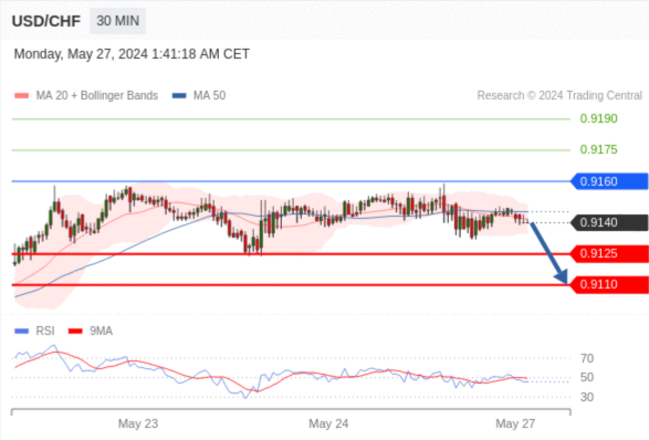 在 0.9160 之下,看跌,目标价位为 0.9125 ,然后为 0.9110 。