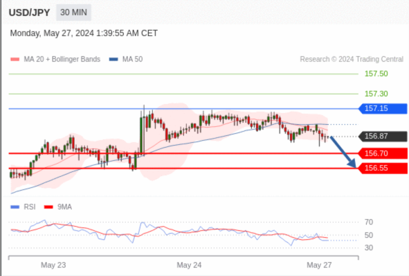在 157.15 之下,看跌,目标价位为 156.70 ,然后为 156.55 。