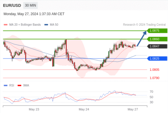 在 1.0825 之上,看涨,目标价位为 1.0860 ,然后为 1.0875 。