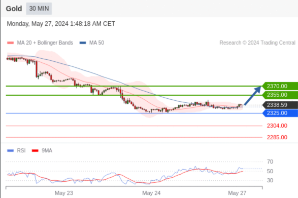 在 2325.00 之上,看涨,目标价位为 2355.00 ,然后为 2370.00 。