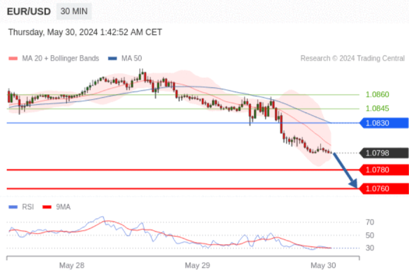 在 1.0830 之下,看跌,目标价位为 1.0780 ,然后为 1.0760 。