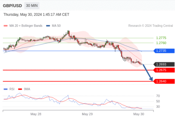 在 1.2735 之下,看跌,目标价位为 1.2675 ,然后为 1.2640 。