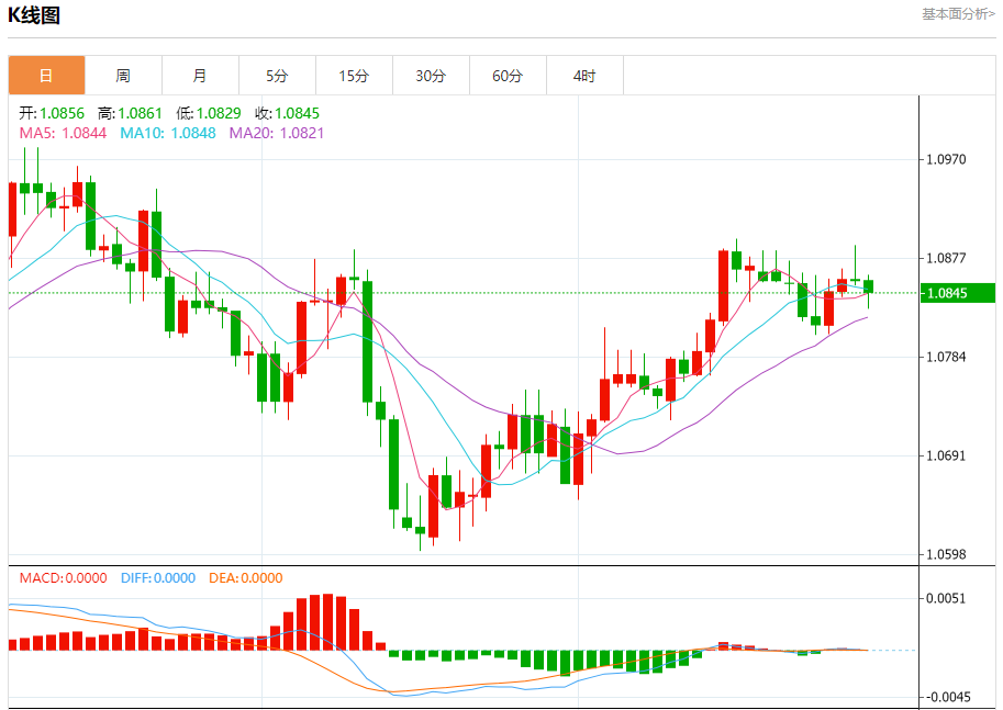 汇价高见1.0861,低见1.0829。上一交易日,汇价收于1.0856。