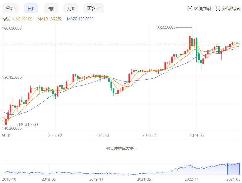 汇价高见157.00,低见156.63。上一交易日,汇价收于156.88。