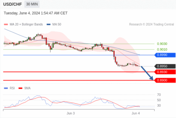 在 0.8990 之下,看跌,目标价位为 0.8930 ,然后为 0.8900 。
