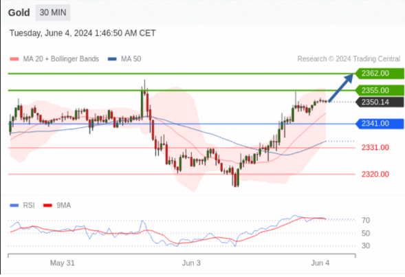在 2341.00 之上,看涨,目标价位为 2355.00 ,然后为 2362.00 。