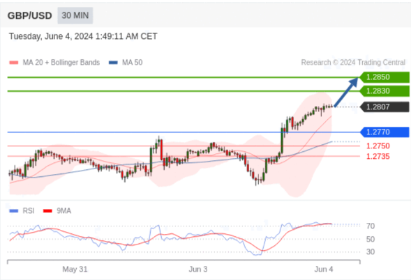 在 1.2770 之上,看涨,目标价位为 1.2830 ,然后为 1.2850 。