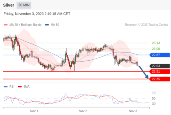 【XM交易平台】2023年11月3日亚盘交易建议:黄金、白银、欧元、英镑、日元、瑞郎交易点位技术分析及预测