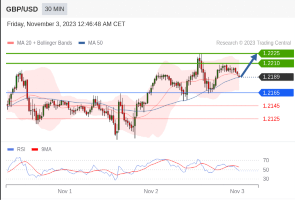 在 1.2165 之上,看涨,目标价位为 1.2210 ,然后为 1.2225 。