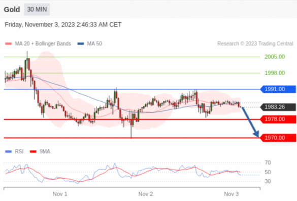 在 1991.00 之下,看跌,目标价位为 1978.00 ,然后为 1970.00 。