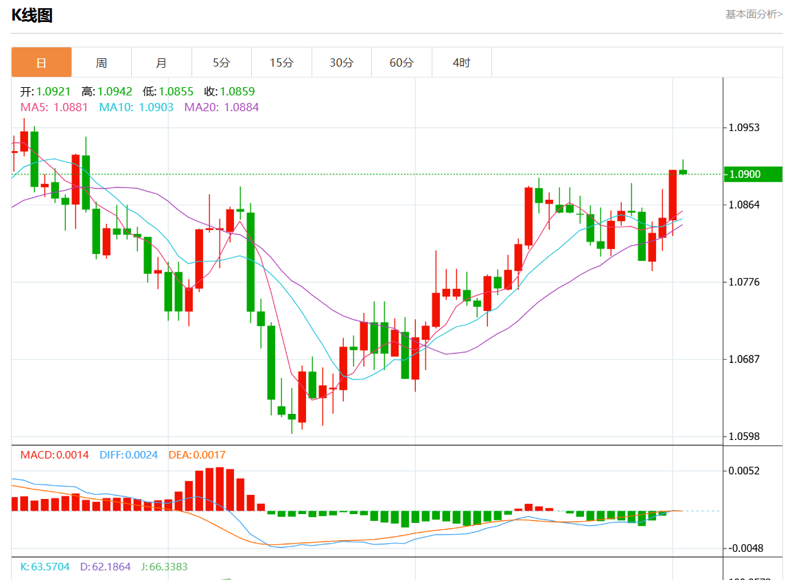 技术点评:在1.0880之上,为多头信号,向上的目标位为1.0925。