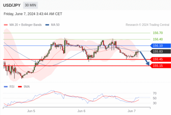 在 156.10 之下,看跌,目标价位为 155.45 ,然后为 155.15 。