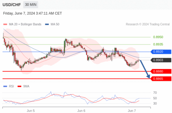 在 0.8920 之下,看跌,目标价位为 0.8880 ,然后为 0.8865 。