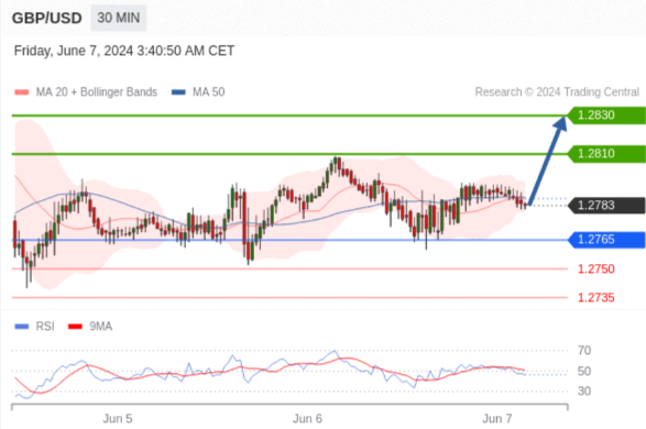 在 1.2765 之上,看涨,目标价位为 1.2810 ,然后为 1.2830 。