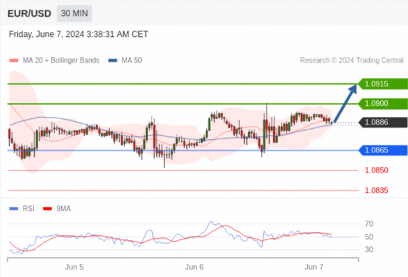 在 1.0865 之上,看涨,目标价位为 1.0900 ,然后为 1.0915 。