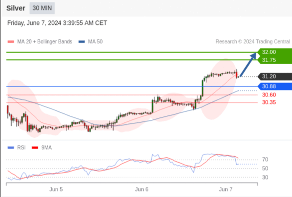 在 30.88 之上,看涨,目标价位为 31.75 ,然后为 32.00 。
