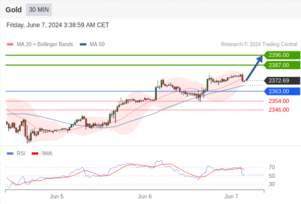 在 2363.00 之上,看涨,目标价位为 2387.00 ,然后为 2396.00 。