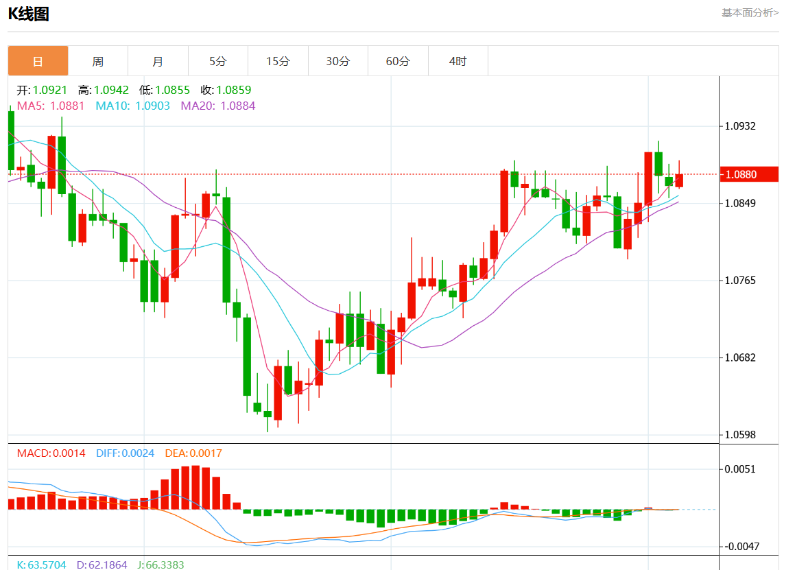 周四欧市盘中,欧元/美元最新报1.0877,日图涨0.08%。