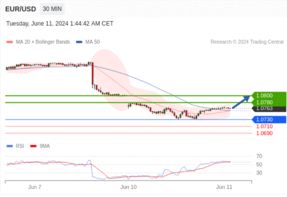 在 1.0730 之上,看涨,目标价位为 1.0780 ,然后为 1.0800 。