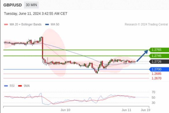 在 1.2700 之上,看涨,目标价位为 1.2745 ,然后为 1.2765 。