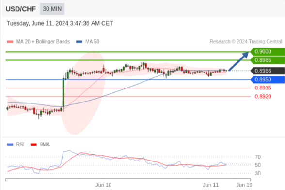 在 0.8950 之上,看涨,目标价位为 0.8985 ,然后为 0.9000 。