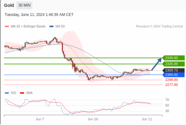 在 2300.00 之上,看涨,目标价位为 2325.00 ,然后为 2339.00 。