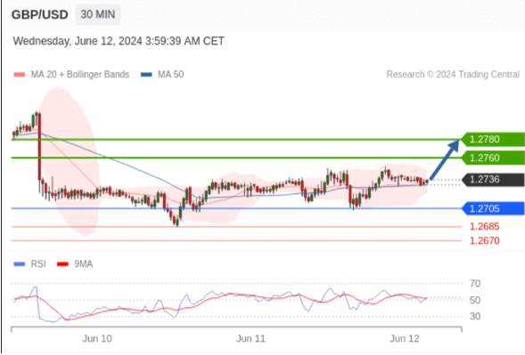 在 1.2705 之上,看涨,目标价位为 1.2760 ,然后为 1.2780 。