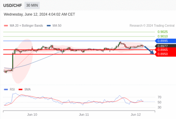在 0.8995 之下,看跌,目标价位为 0.8965 ,然后为 0.8950 。