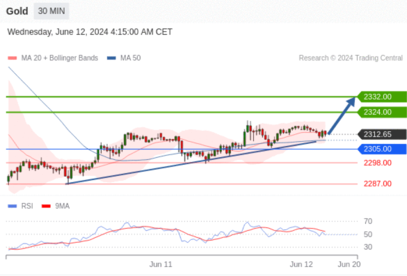 【XM交易平台】2024年6月12日亚盘交易建议:黄金、白银、欧元、英镑、日元、瑞郎交易点位技术分析及预测