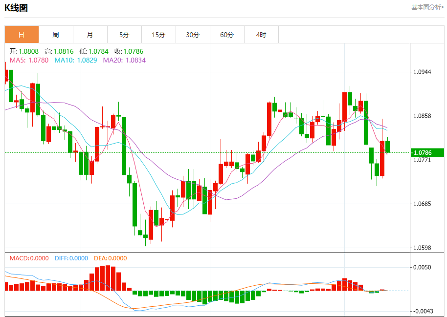 汇价高见1.0816,低见1.0784。上一交易日,汇价收于1.0808。