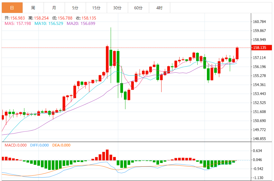 周五(6月14日),美元/日元上涨,暂报157.903,涨幅0.58%。