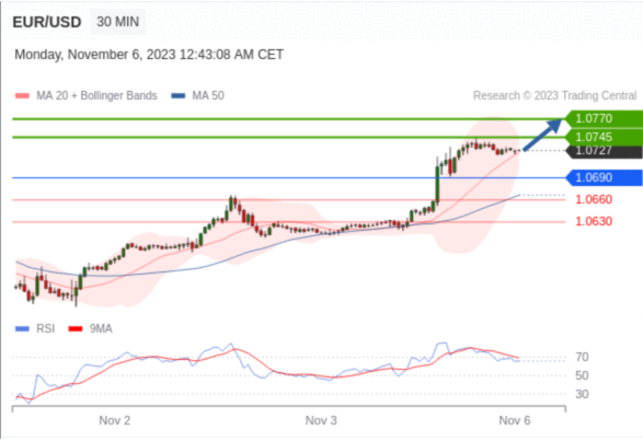 在 1.0690 之上,看涨,目标价位为 1.0745 ,然后为 1.0770 。