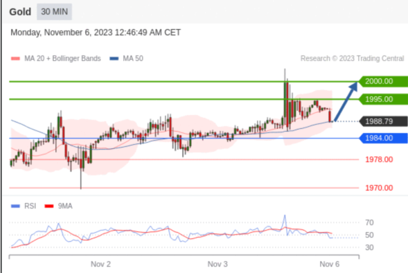 在 1984.00 之上,看涨,目标价位为 1995.00 ,然后为 2000.00 。