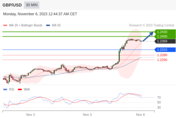 在 1.2315 之上,看涨,目标价位为 1.2400 ,然后为 1.2430 。